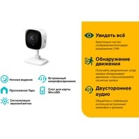 Получайте уведомления, когда камера обнаруживает движение, и просматривайте отснятые записи. Вы также можете персонализировать настройки, указав важные зоны обнаружения движения, чтобы всё происходящее фиксировалось только в выбранной зоне.Не будите детей, заходя к ним в комнату. Присматривайте за ними с телефона благодаря ночному видению на расстоянии до 9 метров — и вам спокойно, и дети поспят.Видео в высоком разрешении 3 МП позволит получить чёткое изображение. Это улучшит распознавание лиц на расстоянии.Общайтесь с любимыми, используя встроенный микрофон и динамик.Ваша приватность гарантируется соответствующим режимом и картой памяти.Камера не только уведомит вас об обнаруженном движении, но и включит световую и звуковую сигнализацию.С бесплатным приложением Tapo всё необходимое всегда под рукой.