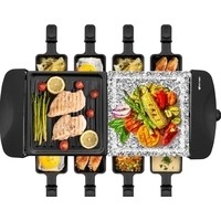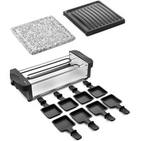 | Комплектация | Раклетница - 1 штКаменная плита - 1 штПанель с антипригарным покрытием - 1 штПорционные сковородки с антипригарным покрытием — 8 шт.Руководство по эксплуатации - 1 штГарантийный талон - 1 шт |